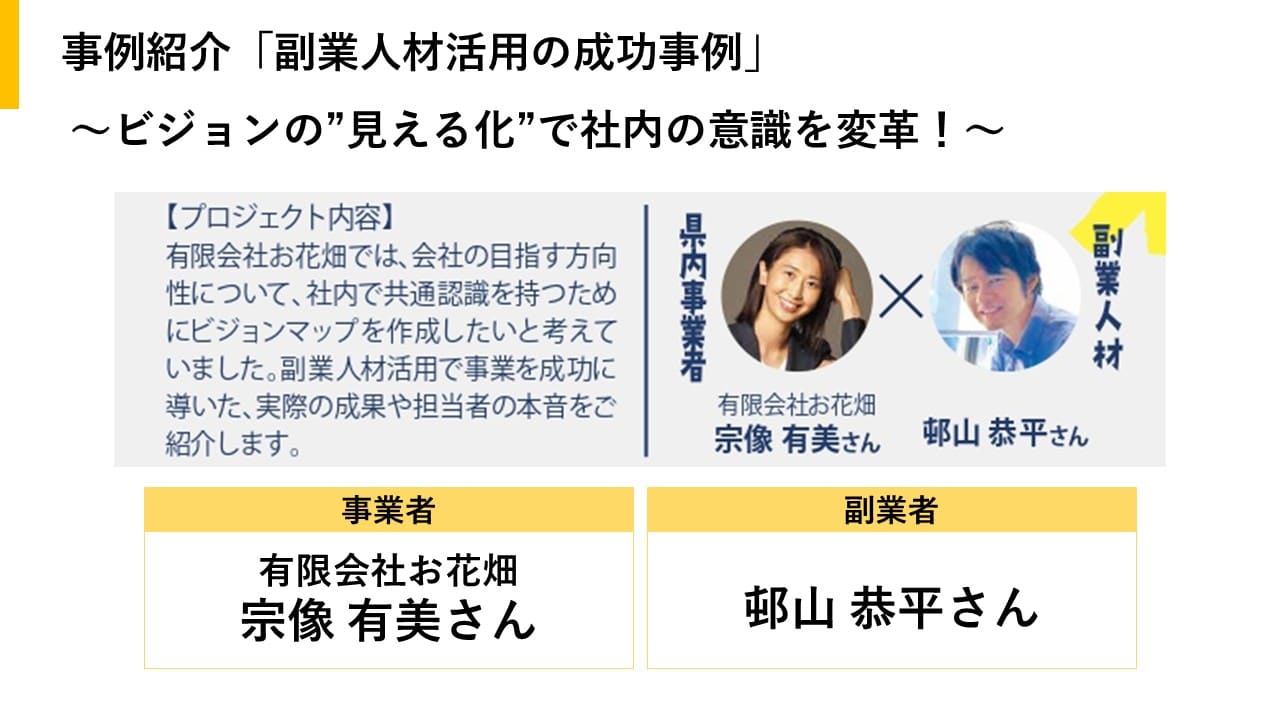有限会社お花畑では、会社の目指す方向性について、社内で共通認識を持つためにビジョンマップを作成したいと考えていました。副業人材活用で事業を成功に導いた、実際の成果や担当者の本音をご紹介します。